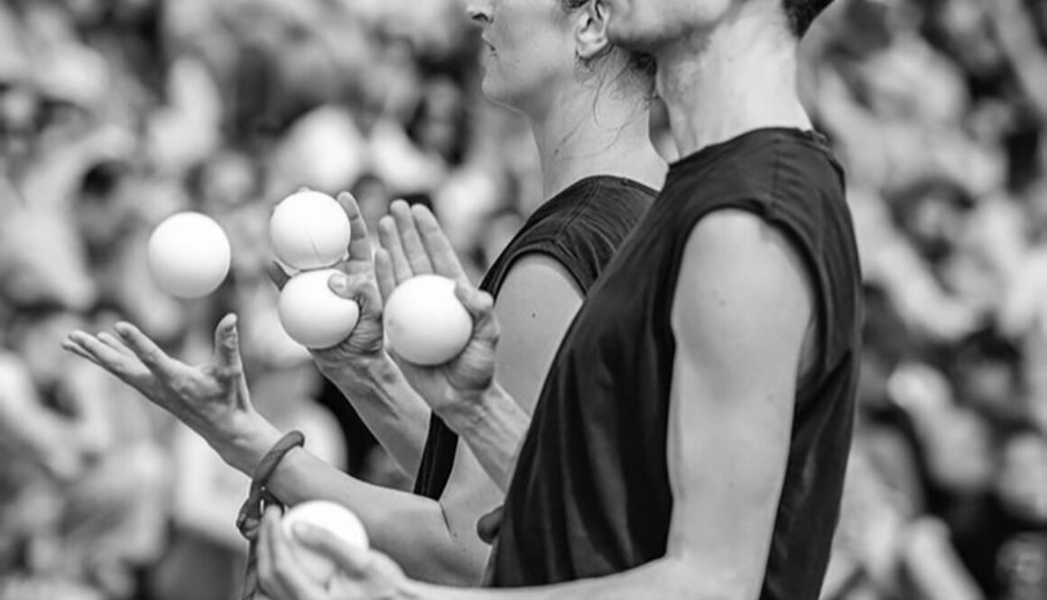 “The Red Thread” ist ein poetisches Jonglage-Duett mit einem besonderen Twist – Artist und Artistin sind aneinander gebunden. Ein tatsächliches rotes Seil verbindet und schränkt ein, mal unter Spannung, mal locker. Freiheit wird am deutlichsten, wenn sie eingeschränkt ist: ein Paradoxon, das das Herzstück dieser minimalistischen Show bildet und ihr einen roten Faden gibt – buchstäblich.